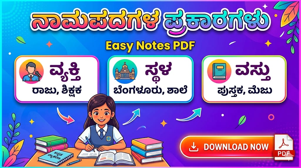 ನಾಮಪದಗಳ ಪ್ರಕಾರಗಳ ಸಂಪೂರ್ಣ PDF ಅನ್ನು ಇಲ್ಲಿ ಡೌನ್ಲೋಡ್ ಮಾಡಿಕೊಳ್ಳಿ.